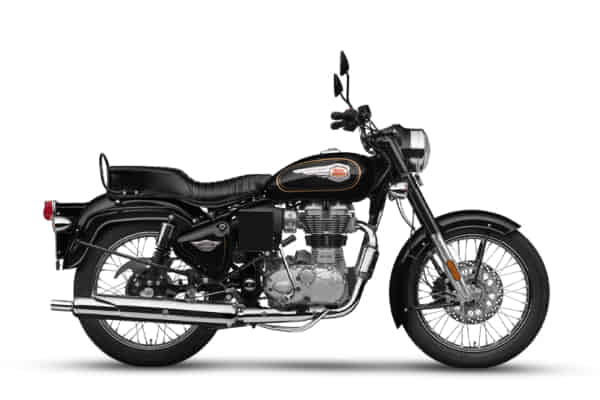 The Royal Enfield Bullet 350 2019-2023 offers customers a choice of 3 different colours to choose from. These colors include Black, Bullet Silver and Onyx Black. For more information about Bullet 350 2019-2023, Check Bullet 350 2019-2023 specifications.
