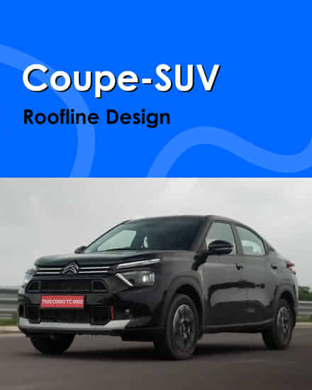Basalt X is a 5 seater car with AC, Rear AC Vents, Automatic climate control, Heater, Vanity Mirrors on Sun Visors, Start / Stop Button, Power Steering, Multifunction Steering Wheel, 3 Drive Modes, Smart Key Keyless Entry, Rear Only Parking Sensors, Headlight and Ignition On Reminder, Fabric Seat Upholstery, Folding Rear Seat, Adjustable Headrests, Cup Holders, Headlight Height Adjuster, Distance to Empty display, GPS & Navigation, Ambient Light, Driver & Co-Driver Side Front Seat Back Pockets, Parcel Tray, Front & Rear Cabin Lights, Manual Adjust - Slide And Recline Co-Driver Seat Adjustment, 12V And Usb Charging Outlets - Front Row, Type C Only Charging Outlets - Second Row, Led Headlamps, Sliding With Storage Front Armrest, Yes, With Cup Holders Rear Armrest, Manual Hand Brake Parking Brake, Tilt Only Adjustable Steering, Manual Adjust - Slide& Recline And Height Driver Seat Adjustment, {7 inches}, Digital Console Instrument Console.Citroen Basalt X Exterior