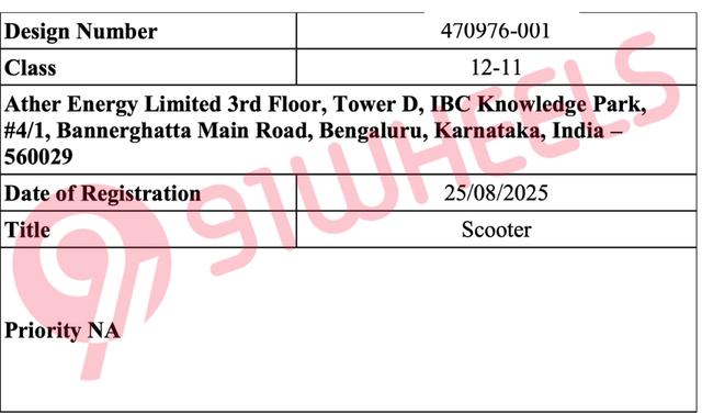 Ather Energy is gearing up for a major product expansion, and the clearest sign yet has arrived in the form of a newly filed design patent. The patent reveals what appears to be the first production-ready Ather scooter based on Ather's all-new EL Platform, marking a significant step beyond the company's long-running 450 Series architecture. The scooter's silhouette stays very close to the EL01 concept showcased during Ather Community Day 2025, hinting that the brand is readying multiple new models to widen its appeal beyond the performance-oriented 450 and family-focused Rizta. Read on to find out more details, but before that, make sure to join the 91wheels WhatsApp Community, specifically curated for petrolheads like us to keep up with the latest news and automotive updates.